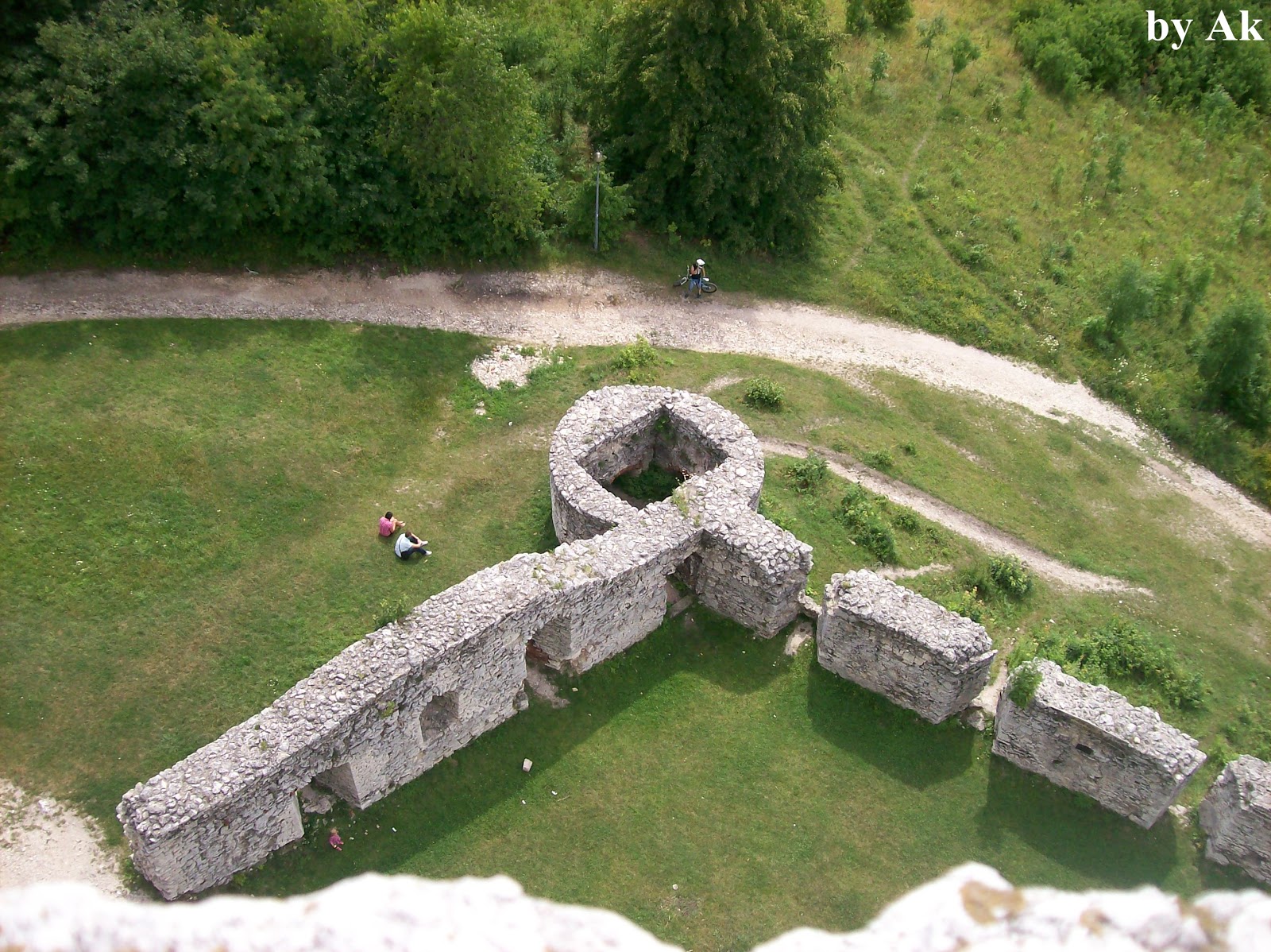Kilka kilometrów za Kluczami tabliczka przy drodze informuje nas, że dojechaliśmy na miejsce. Nawet dla mnie - starego wycieczkowego wiarusa - nazwa OGRODZIENIEC brzmi magicznie. Dojeżdżamy do Podzamcza i otwiera się przed nami widok mas ludzkich zachęcających "wjedź na mój parking"... W sumie dobrze, bo samochody nie stoją przy drodze, nie ma niebezpieczeństwa, że ktoś coś ukradnie, a cała przyjemność, czyli 5-8 złotych zostaje w rękach "gospodarzy".